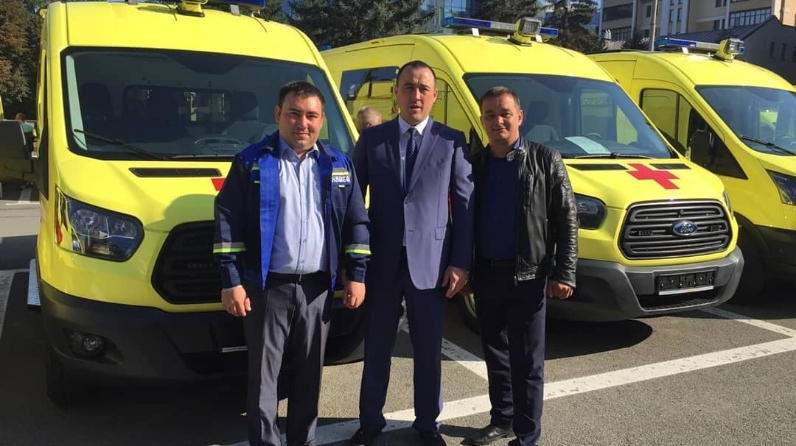 Автомобили скорой медицинской помощи марки "ФОРД ТРАНЗИТ" класса "В" оснащенные современным медицинским оборудованием вручили главному врачу ГАУЗ "Высокогорская ЦРБ" Рамиль Равилевичу Зиатдинову.