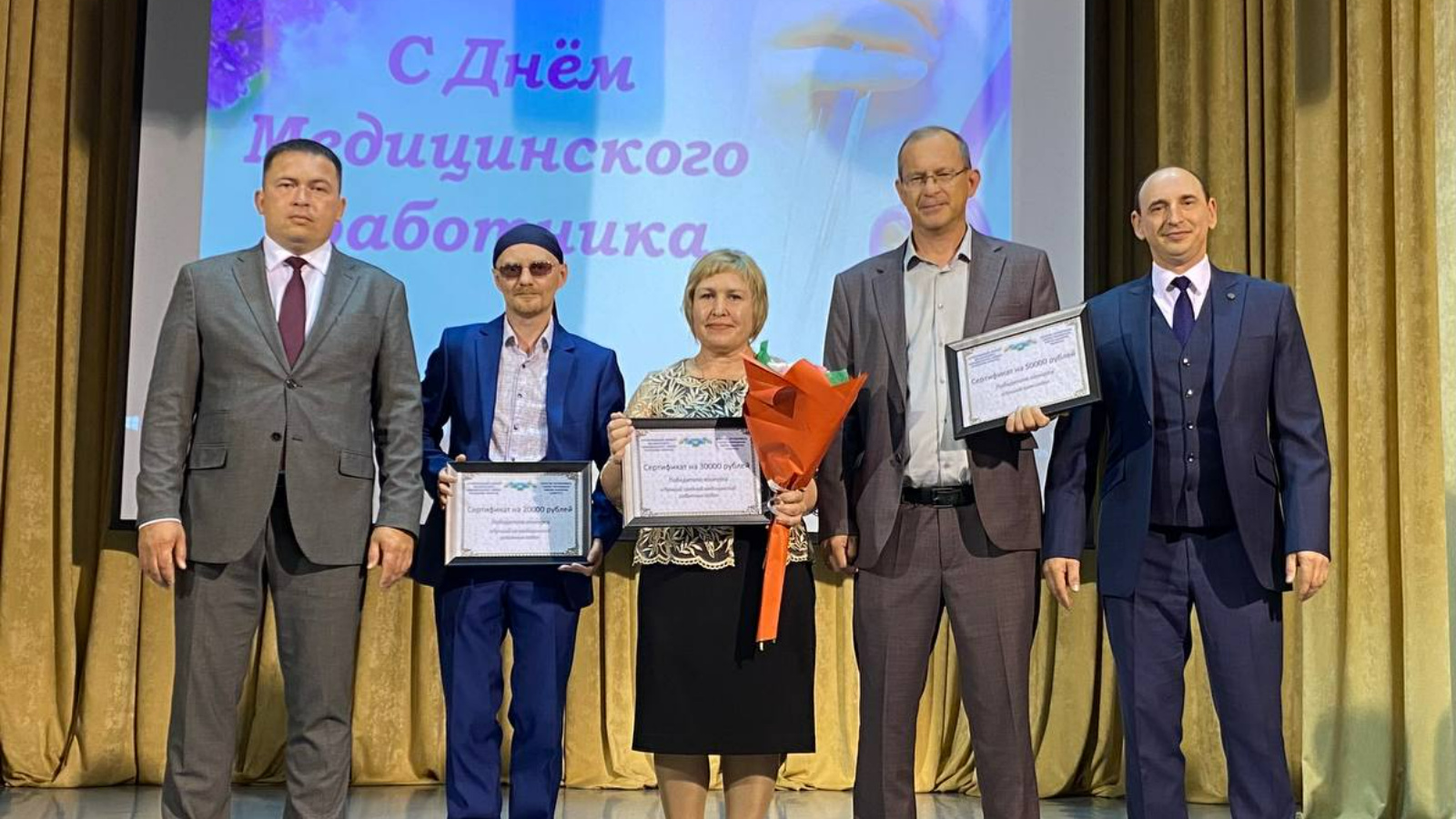 26 июня в Высокогорском центральном доме культуре прошло празднование Дня медицинского работника и чествование сотрудников Высокогорской ЦРБ. Поздравить и наградить медработников почетными грамотами и благодарностями в этот день пришли руководитель Исполнительного комитета Высокогорского района Рамиль Хакимуллин и главный врач Высокогорской ЦРБ Айрат Гайфуллин.